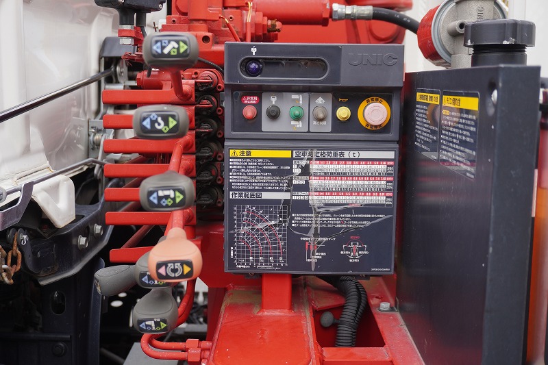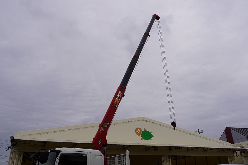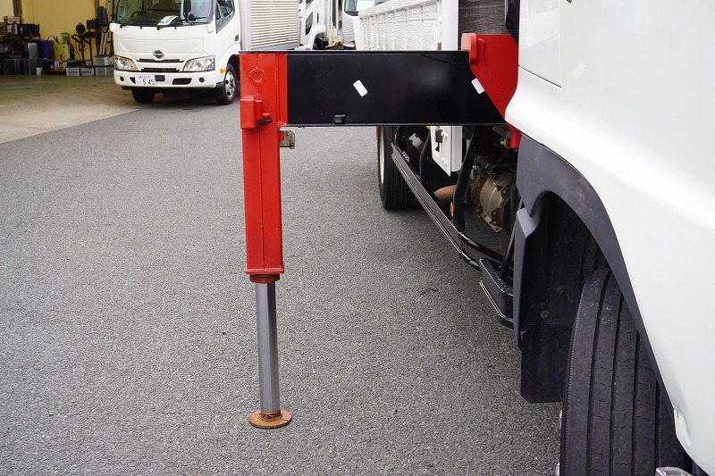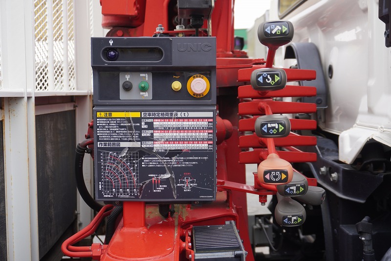 4t 標準巾 寝台付き 4段ユニック 2.4トン積 リモコン フック格納 2.9トン吊 フック穴4対 5500mm長 内フック 鳥居エキスバンド張り 鳥居下部鉄板 |