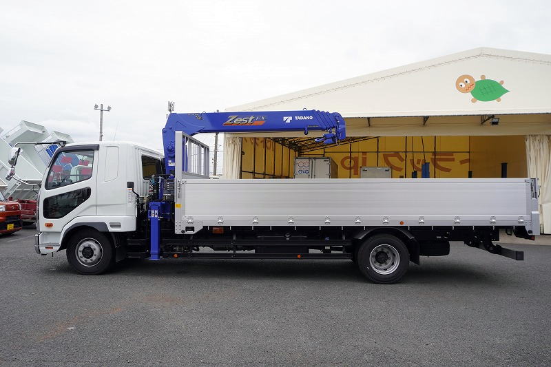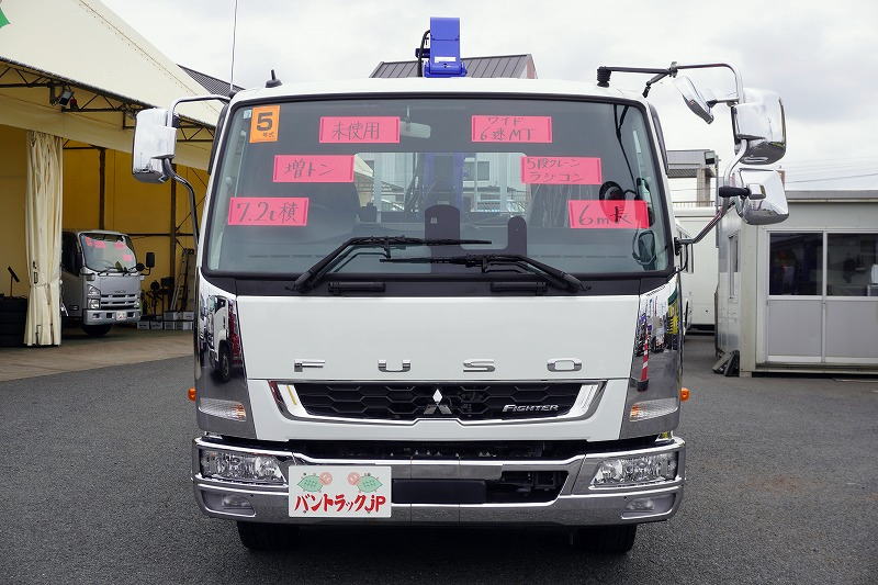 在庫No.K-0050 (未使用) ファイター 増トン 「ワイド ベッド付き」 5段クレーン 積載7200kg タダノ製 6m長 アルミブロック ラジコン フックイン 2.93t吊 角足 差し違いアウトリガー ETC2.0 坂道発進補助 オートエアコン リーフサス メッキパーツ多数!6速MT!