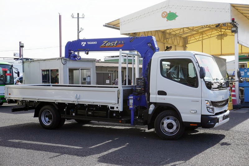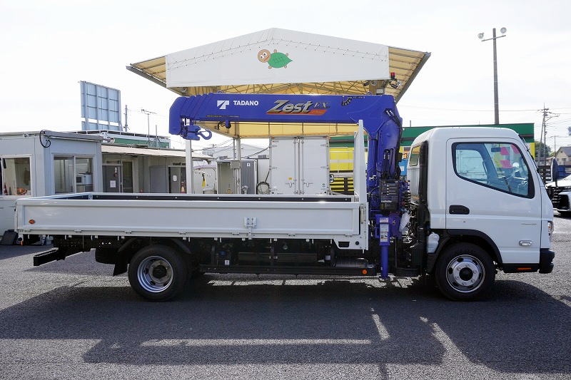 在庫No.K-0118 (未使用) キャンター 「ワイド超ロング」 5段クレーン 積載3000kg タダノ製 ラジコン フックイン 2.93t吊 左電格ミラー LEDヘッドライト&フォグランプ スマートキー 衝突軽減ブレーキ 車線逸脱警報 5速MT!