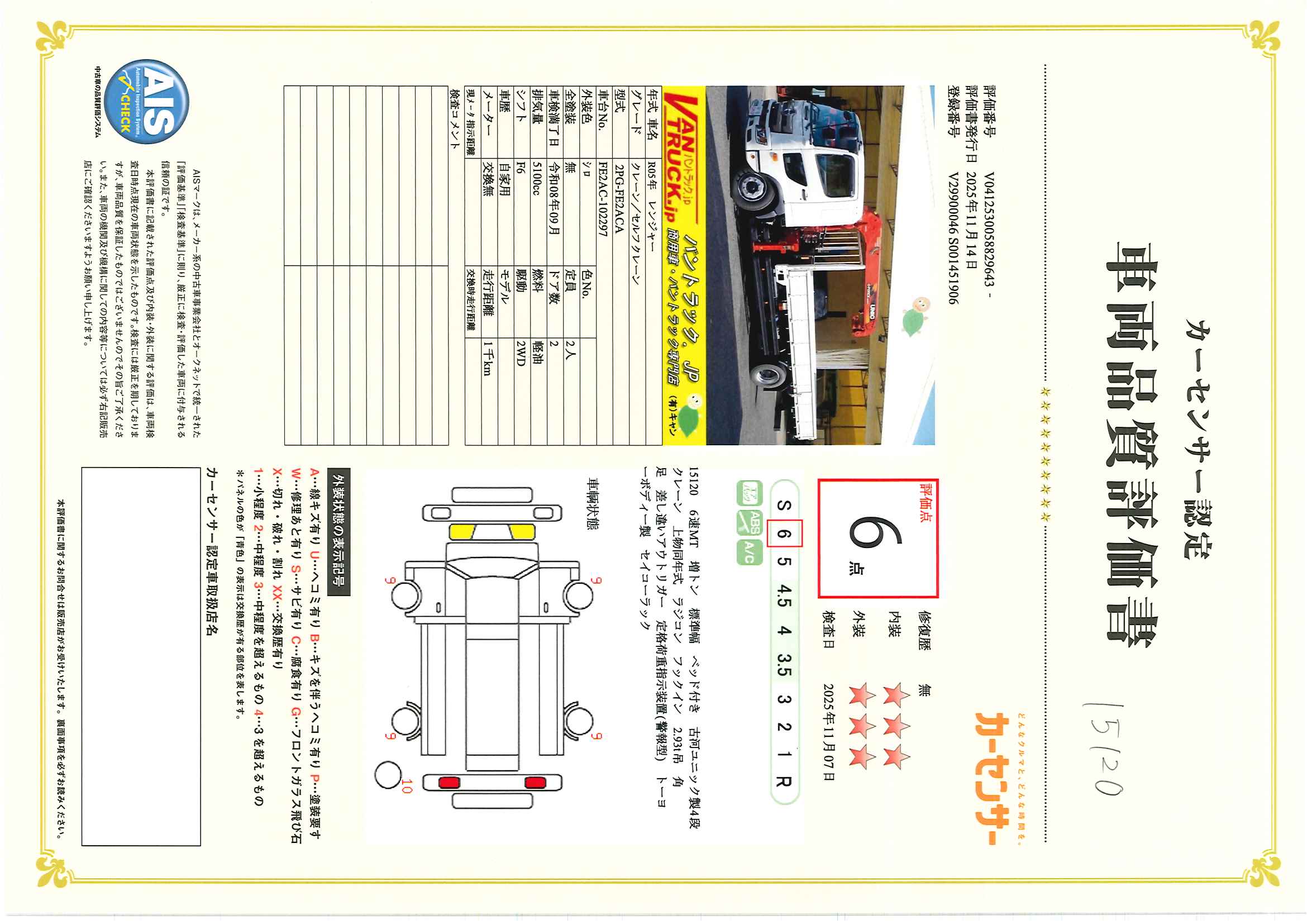 在庫No.K-0120 (未使用) レンジャー 増トン 「標準幅 ベッド付」 4段クレーン 積載7700kg 古河ユニック製 5.5m長 ラジコン フックイン 2.93t吊 差違いアウトリガー 角足 セイコーラック 坂道発進補助 オートエアコン 衝突軽減ブレーキ 車線逸脱警報 6速MT! 車検「R8年9月まで!」