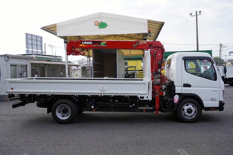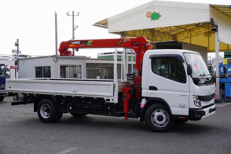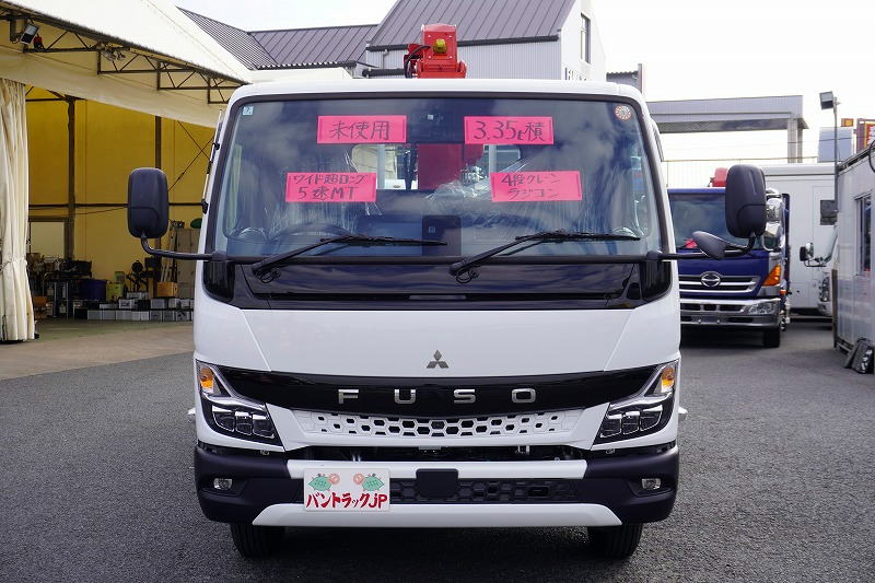 在庫No.K-0125 (未使用) キャンター 「ワイド超ロング」 4段クレーン 積載3350kg 古河ユニック製 ラジコン フックイン 2.93t吊 セイコーラック バックカメラ LEDヘッドライト&LEDフォグランプ 左電格ミラー スマートキー 衝突軽減ブレーキ 車線逸脱警報 5速MT!車検「R9年7月まで!」