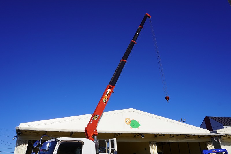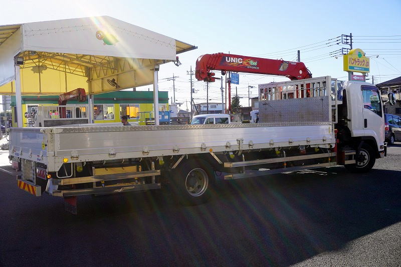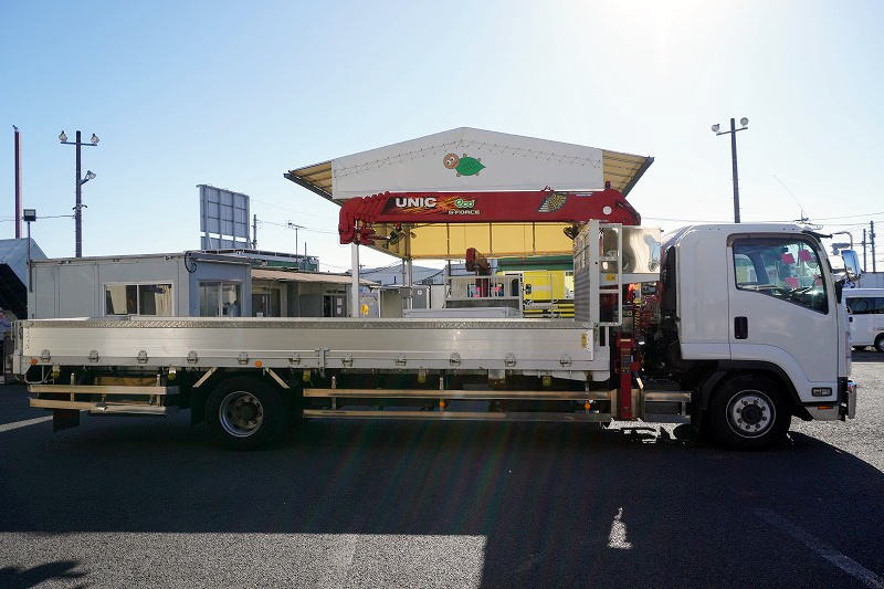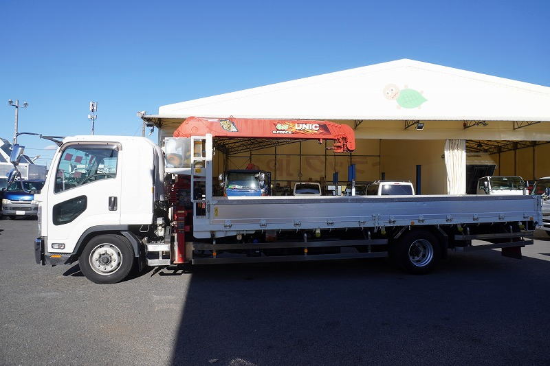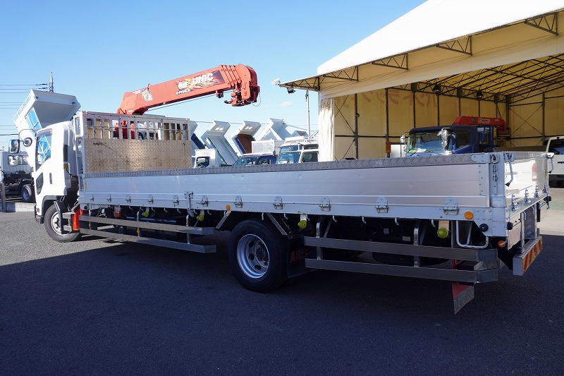 在庫No.K-0159 フォワード 増トン 「ワイド ベッド付き」 5段クレーン 積載6700kg 古河ユニック製 6.5m長 アルミブロック ラジコン フックイン 2.93t吊 差し違いアウトリガー 荷台シマ板張り 網工具入れ セイコーラック 鳥居ラダー&左右工具箱&下部シマ板張り 床フック 落とし込みフック18対 ステンレス2段サイドバンパー 美川ボディー 坂道発進補助 メッキパーツ ETC2.0 6速MT! 車検「R8年6月まで!」
