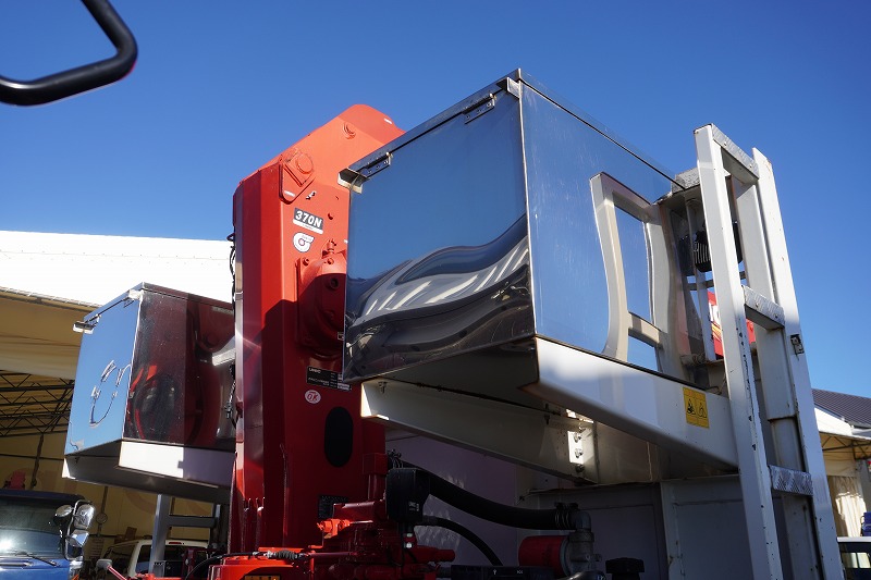 増トン ワイド 寝台付 5段ブーム アルミ平 6.7トン積 リモコン フック格納 2.9トン吊 6500mm長 メッキ 造りボディー カゴ |