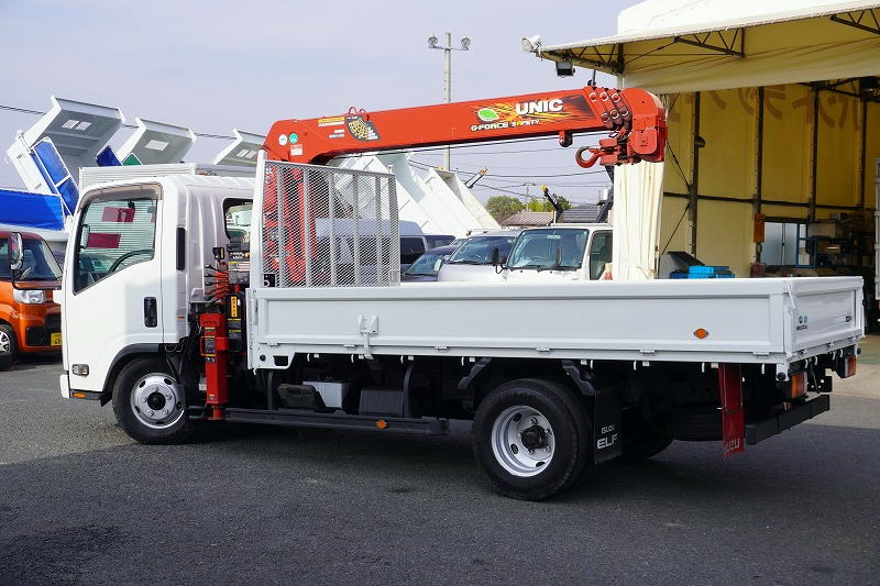 在庫No.K-0169 エルフ 「標準幅 ロング」 4段クレーン 積載2000kg 古河ユニック製 ラジコン フックイン 2.93t吊 セイコーラック 床フック3対 鳥居上部金網張り 左電格ミラー 坂道発進補助 ETC フォグランプ 6速MT!