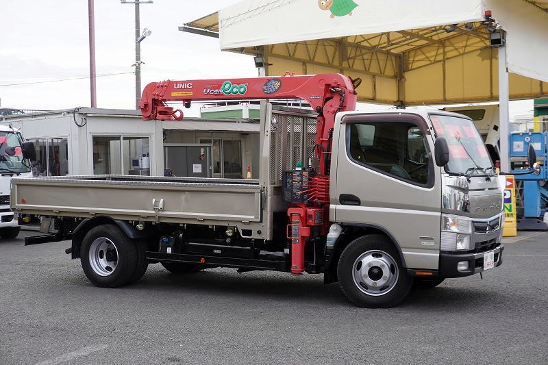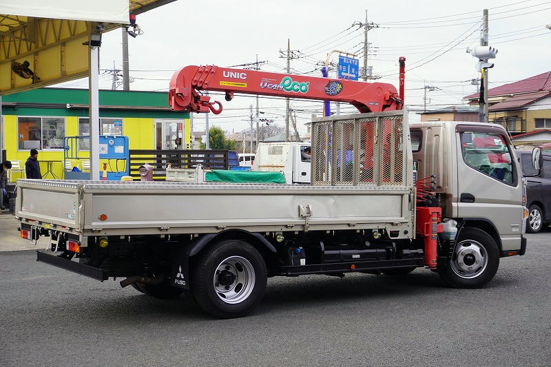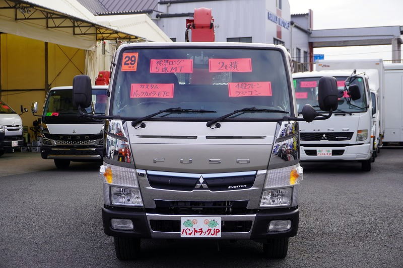 在庫No.K-0102 キャンター 「カスタム 標準幅 ロング」 4段クレーン 積載2000kg 古河ユニック製 ラジコン フックイン 2.63t吊 セイコーラック 鳥居工具箱&上部金網張り アオリ上部プロテクター付き 網工具入れ 左電格ミラー バックカメラ ETC フォグランプ キーレス HIDヘッドライト メッキパーツ 5速MT!