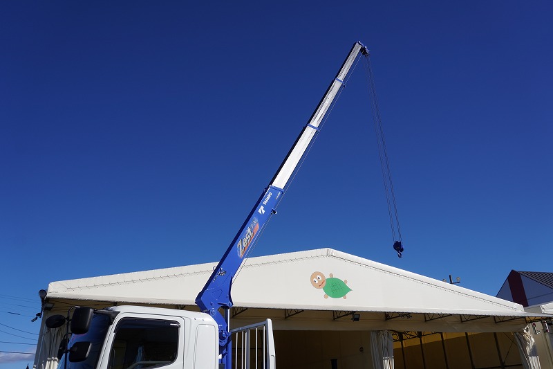 4t 標準巾 寝台付 ショート 4段ブーム 2.1トン積 5100mm長 リモコン フック格納 2.9トン吊 EZラック フック穴 |