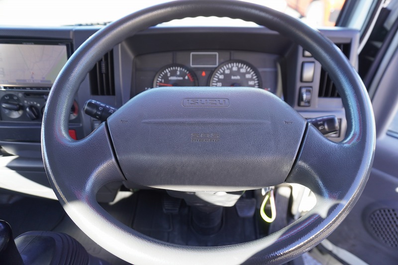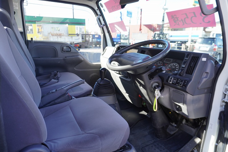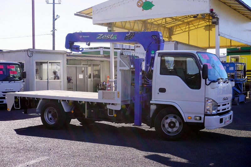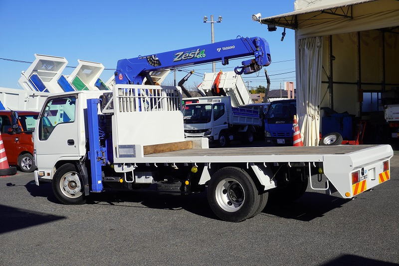 在庫No.K-0230 エルフ 「標準幅 ロング」 3段セルフクレーン 積載3550kg タダノ製 ラジコン フックイン 2.63t吊 アユミ板掛け 造りボディー 鳥居下部鉄板張り 床フック 左電格ミラー 坂道発進補助 社外ナビ ETC 6速MT!希少車!!