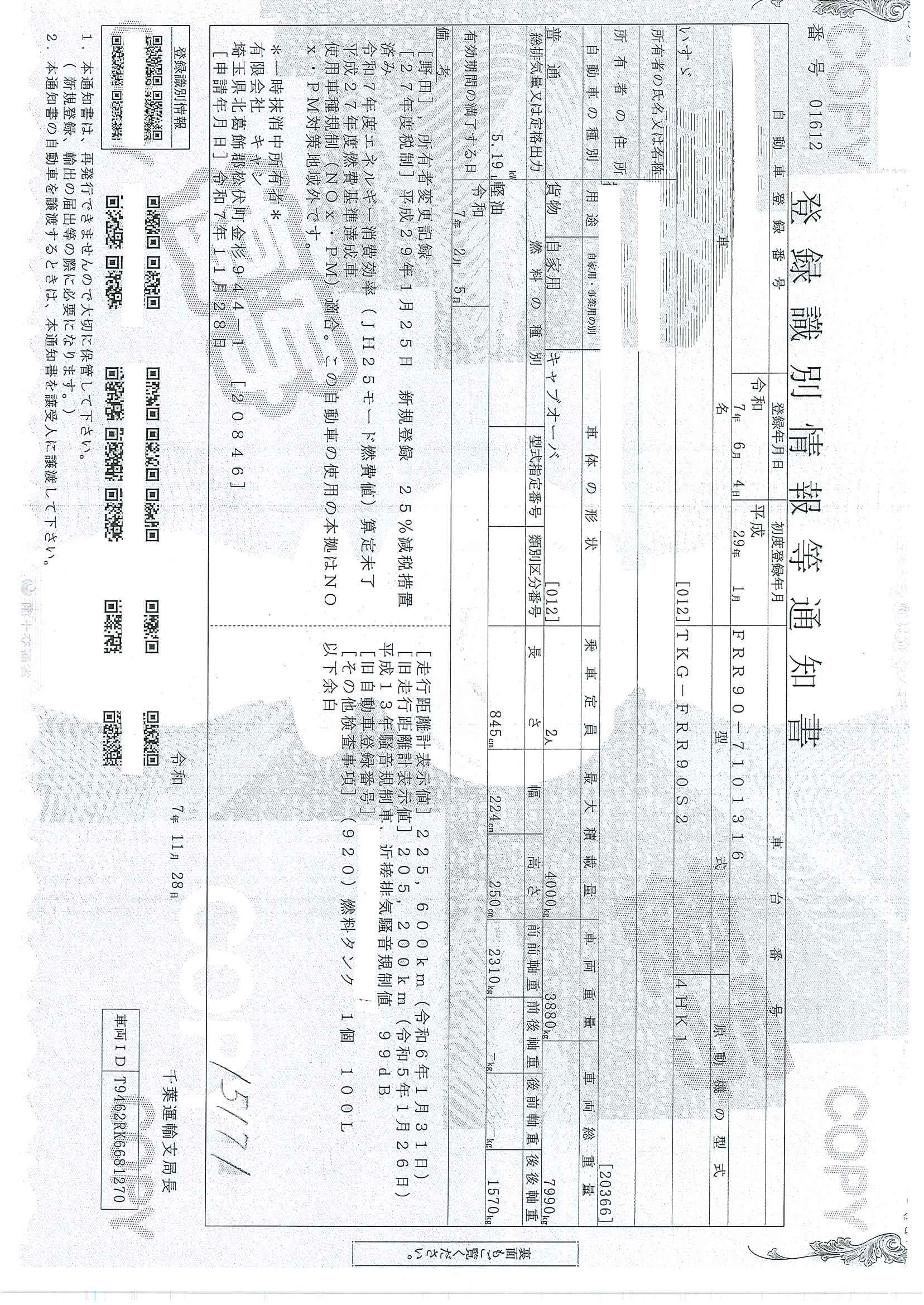 当店が把握できる車検証の表記より