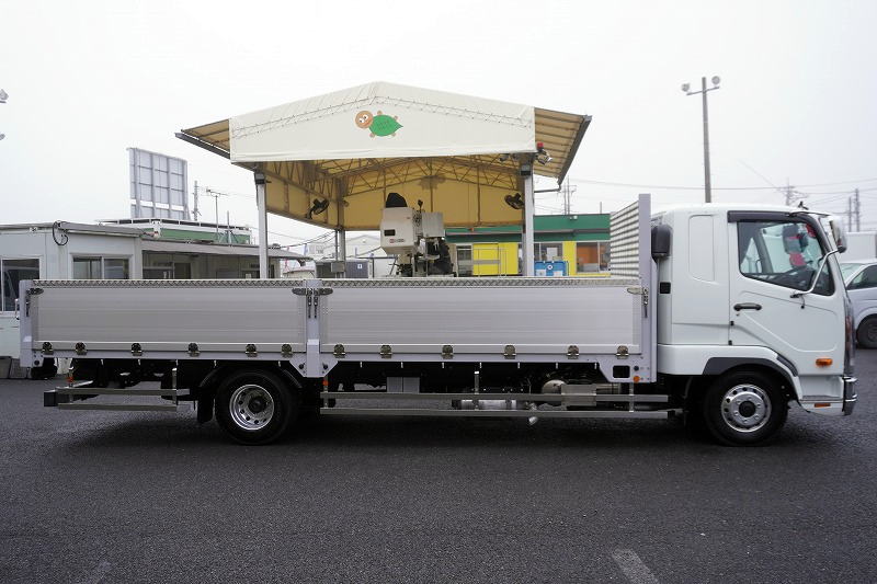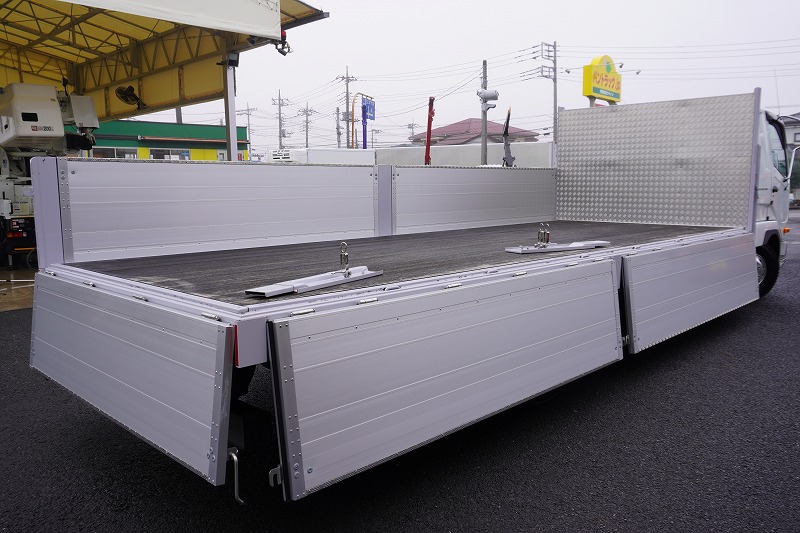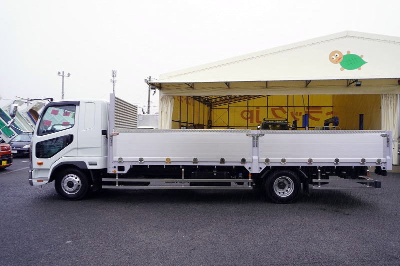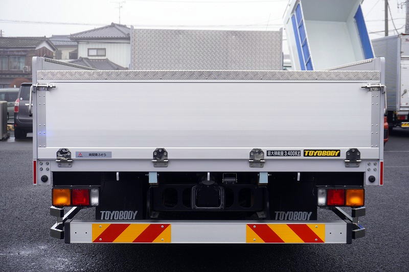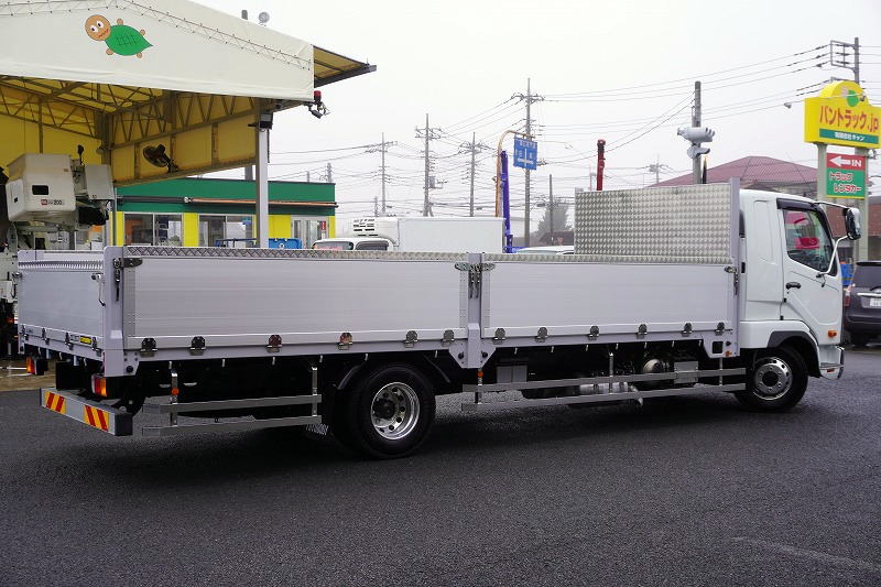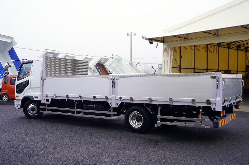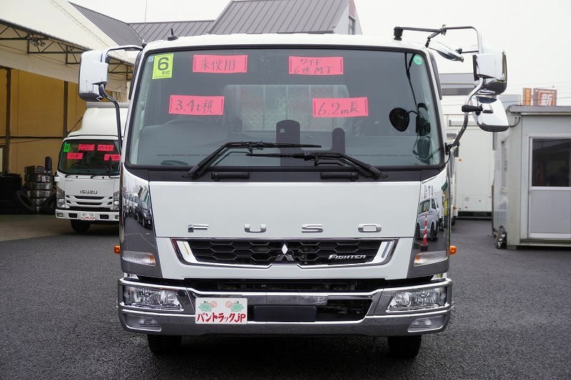 在庫No.K-0210 (未使用) ファイター 4トン 「ワイド ベッド付き」 平ボディー アルミブロック リアエアサス 積載3400kg 6.2m長 五方開 東洋ボディー製造りボディー アオリ上部プロテクター付き 鳥居シマ板張り 落とし込みフック バックカメラ ETC2.0 坂道発進補助 メッキパーツ アルミホイール HIDヘッドライト フォグランプ オートエアコン 衝突軽減ブレーキ 車線逸脱警報 融雪仕様!6速MT! 車検「R8年11月まで!」