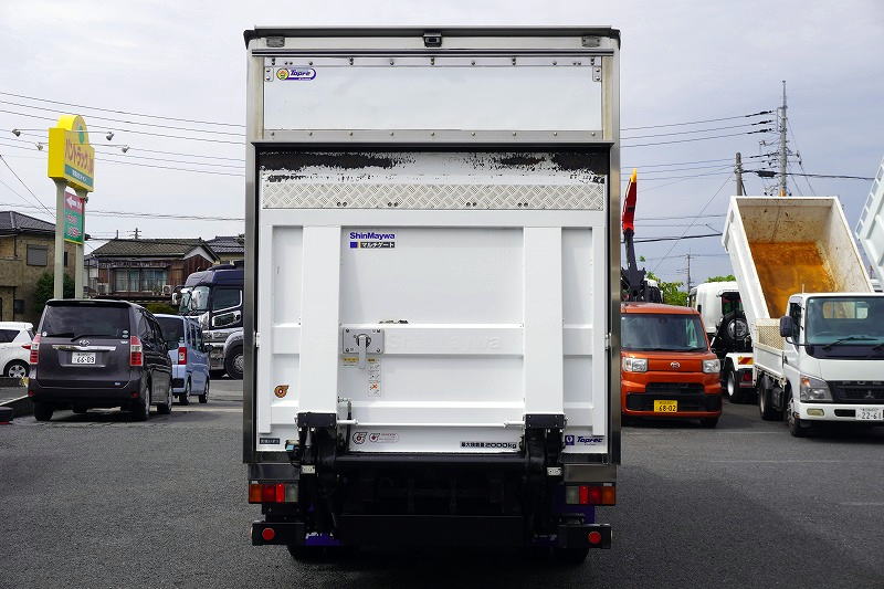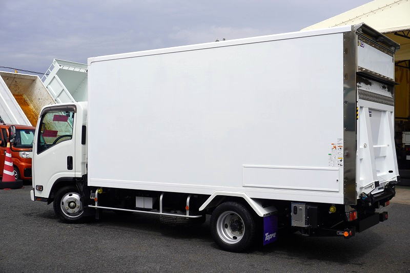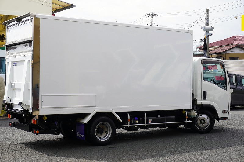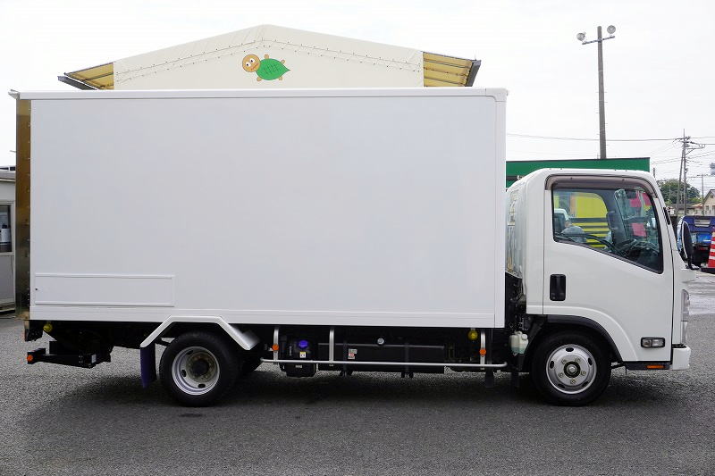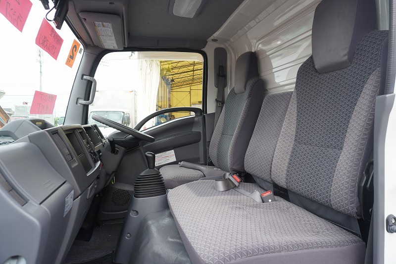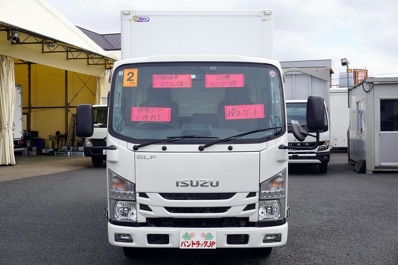 在庫No.K-0020 エルフ 「標準幅 ロング」 パネルバン 積載2000kg 跳ね上げ式 大型パワーゲート付き 荷台、箱内壁面ステンレス張り ラッシング1段 バックカメラ 左電格ミラー フォグランプ 衝突軽減ブレーキ 車線逸脱警報 東プレ製 給食配送車仕様!6速MT!希少車!!