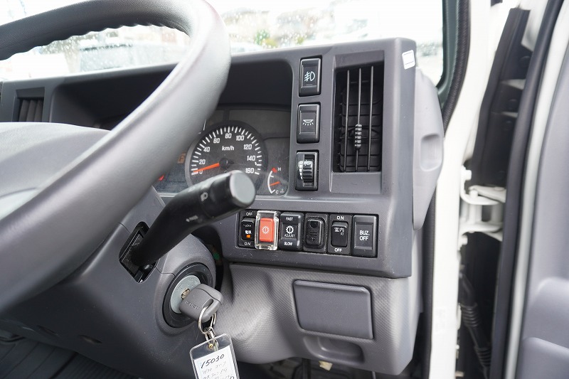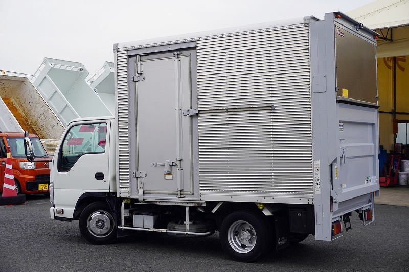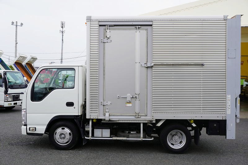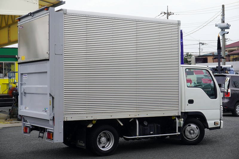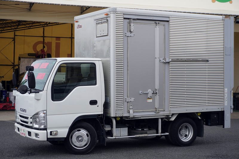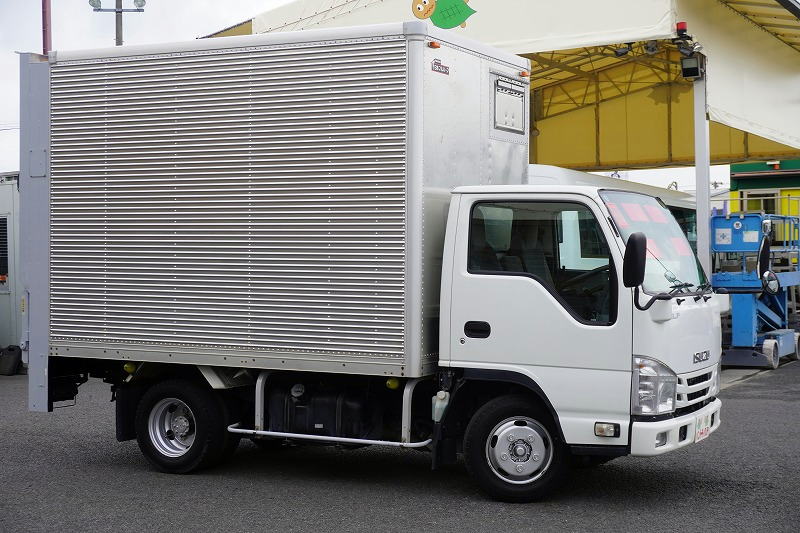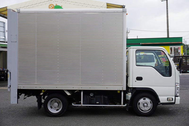 在庫No.K-0030 エルフ 10尺 アルミバン 積載1900kg サイドドア 跳ね上げ式 垂直パワーゲート ラッシング2段 通気口 バックカメラ ETC フォグランプ 全低床 AT車!準中型(5トン限定)免許対応! 車検「R8年8月まで!」