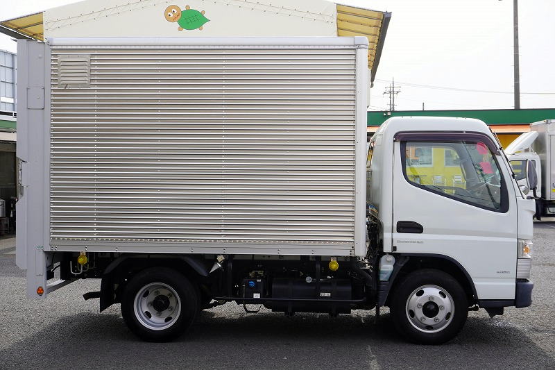 在庫No.K-0032 キャンター 10尺 アルミバン 積載2000kg サイドドア 跳ね上げ式 垂直パワーゲート ラッシング3段 荷台シマ板張り 床フック4対 バックカメラ ETC2.0 左電格ミラー 車線逸脱警報 フォグランプ 低走行!AT車!