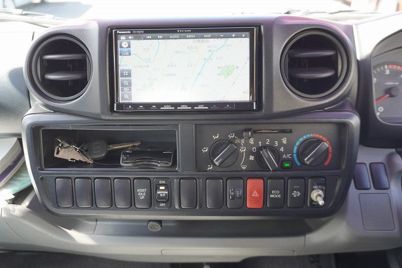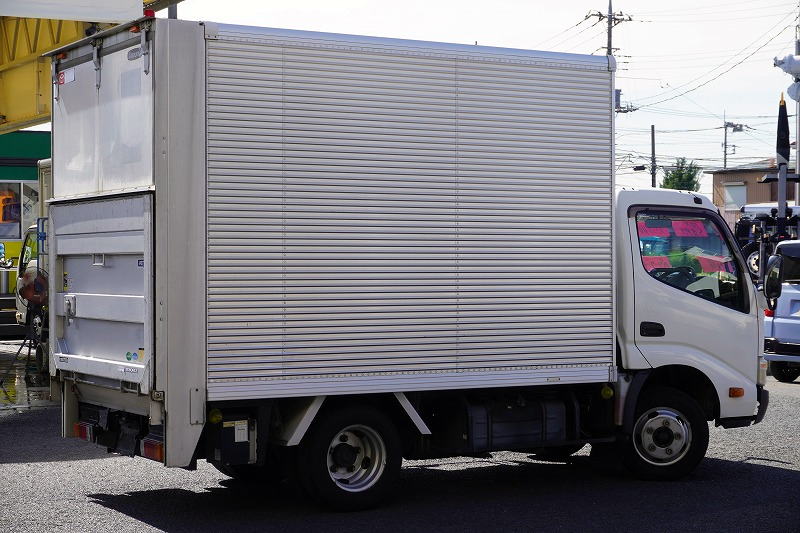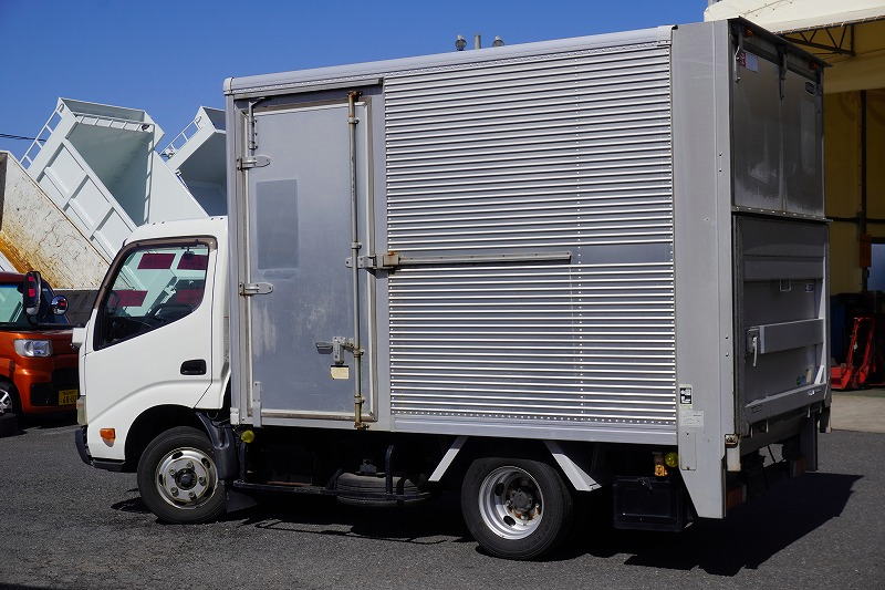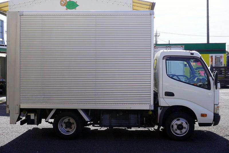 在庫No.K-0066 トヨエース 10尺 アルミバン 積載2000kg サイドドア 跳ね上げ式 垂直パワーゲート ラッシング1段 箱内当て物付き バックカメラ ETC 社外ナビ 全低床 北村製 ワンオーナー!5速MT!