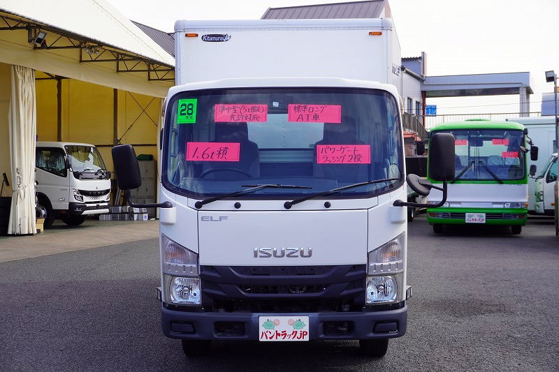 在庫No.K-0071 エルフ 「標準幅 ロング」 パネルバン 積載1600kg 跳ね上げ式 垂直パワーゲート ラッシング2段 バックカメラ 左電格ミラー キーレス 全低床 北村製 AT車!準中型(5トン限定)免許対応!希少車!!