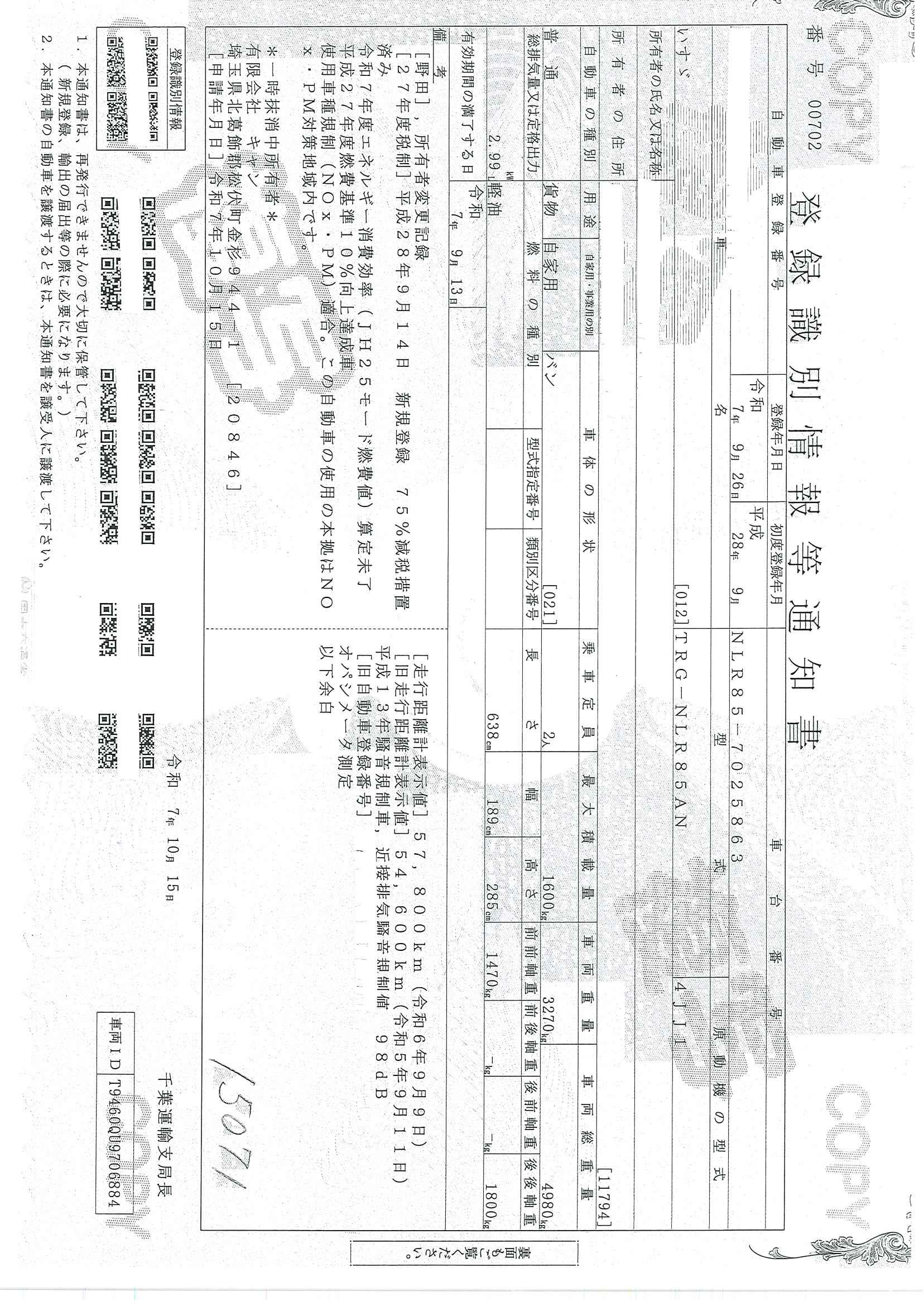当店が把握できる車検証の表記より