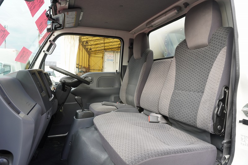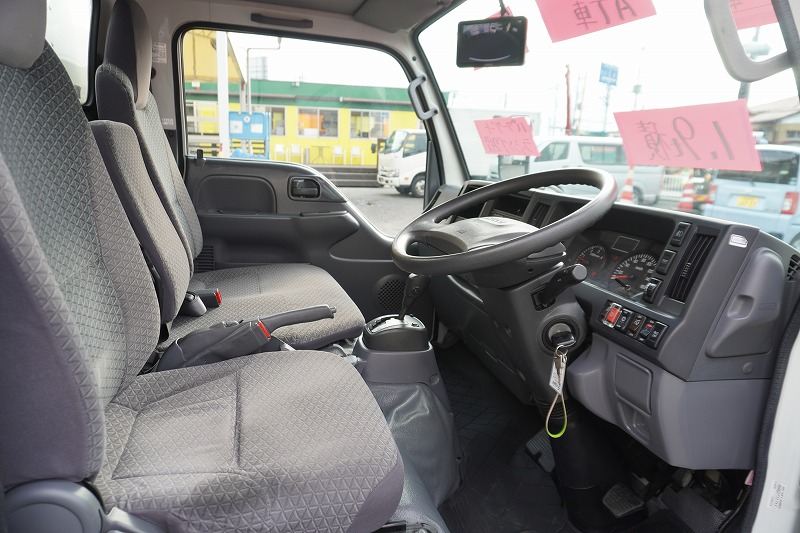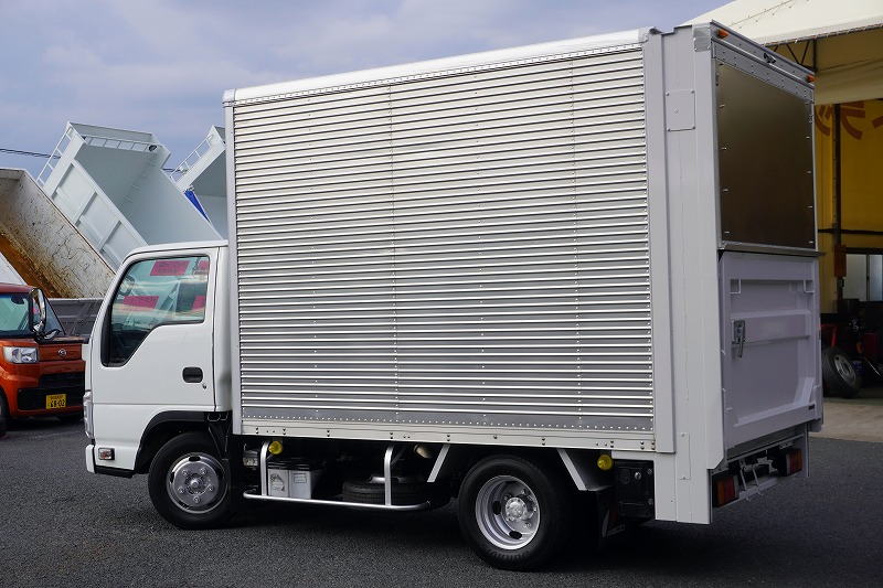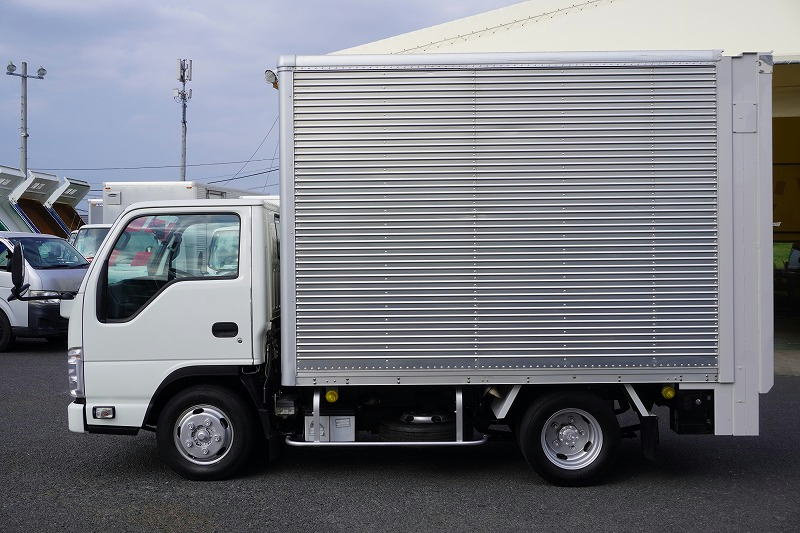 在庫No.K-0089 エルフ 10尺 アルミバン 積載1900kg 跳ね上げ式 垂直パワーゲート ラッシング2段 左電格ミラー バックカメラ フォグランプ 全低床 AT車!準中型(5トン限定)免許対応! 車検「R8年9月まで!」