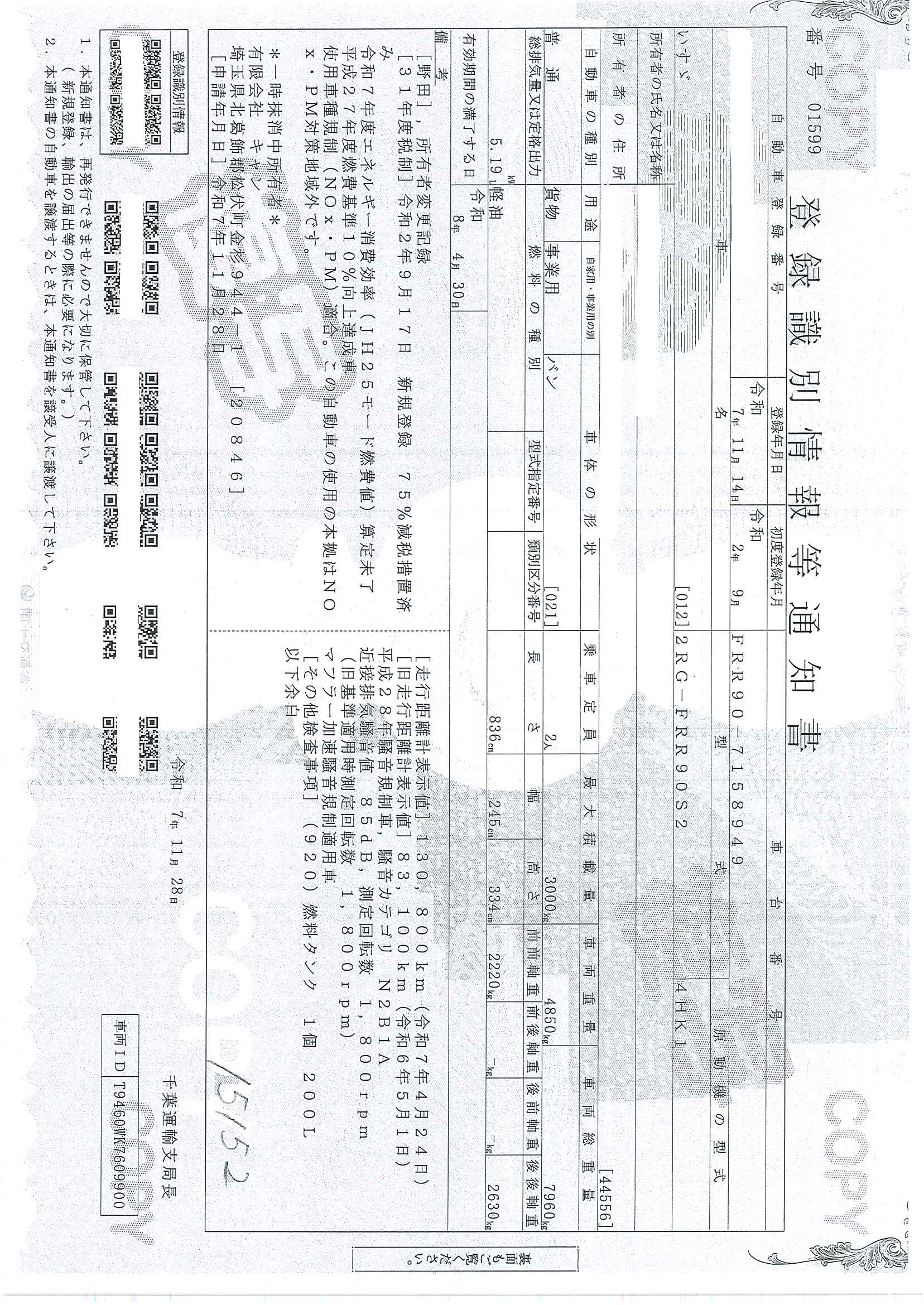 当店が把握できる車検証の表記より