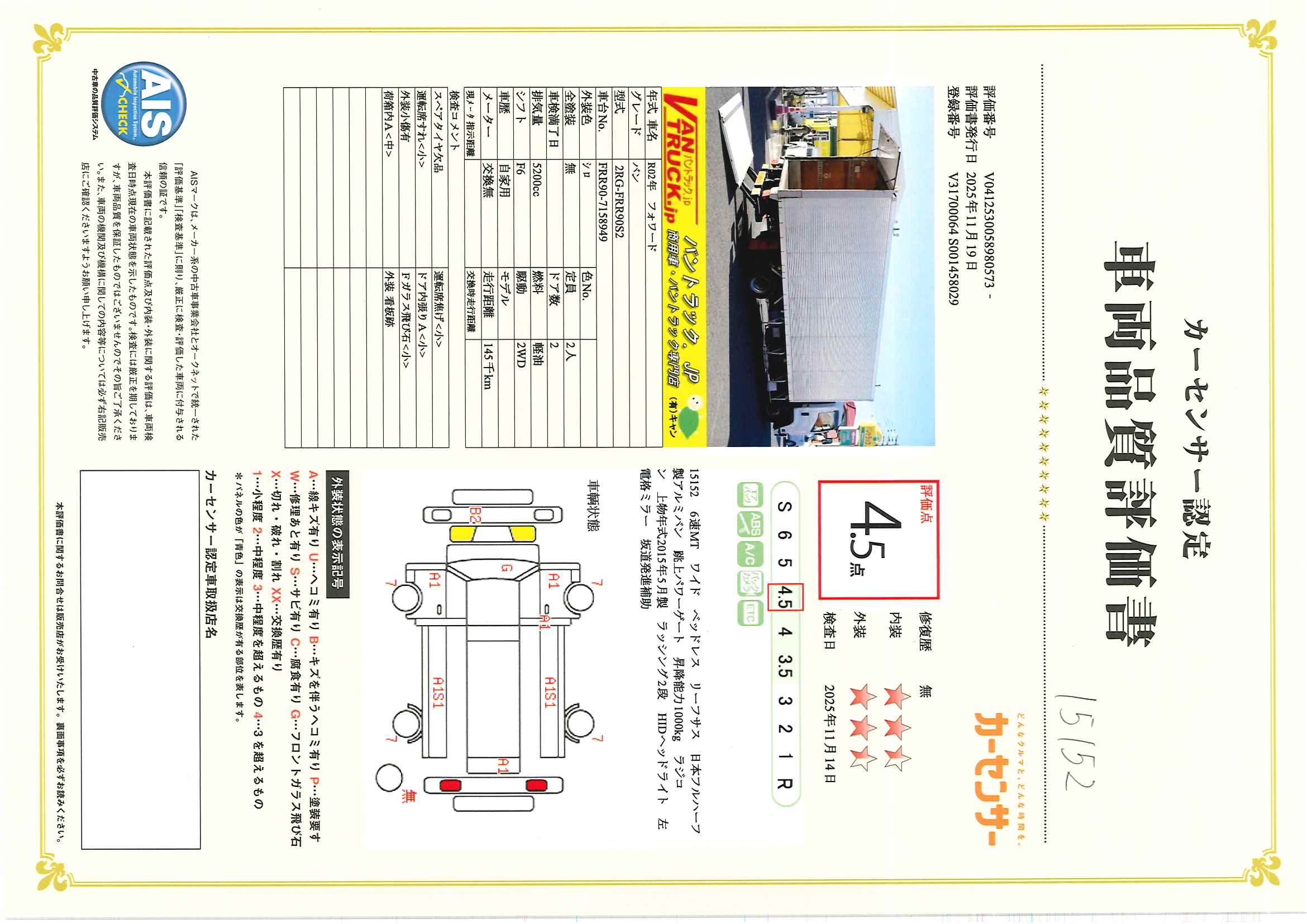在庫No.K-0152 フォワード 4トン 「ワイド ベッドレス」 アルミバン 積載3000kg リーフサス 6.2m長 跳ね上げ式 パワーゲート ラジコン ラッシング2段 バックカメラ ETC2.0 坂道発進補助 HIDヘッドライト 日本フルハーフ製 6速MT!