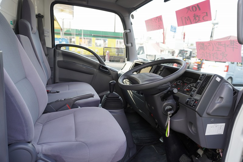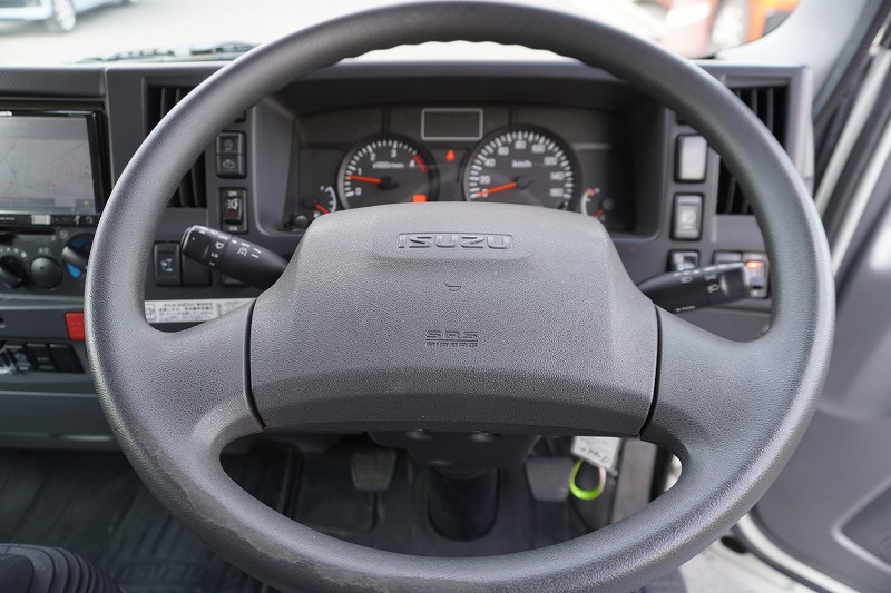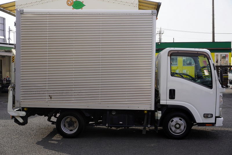 在庫No.K-0168 エルフ 10尺 アルミバン 積載1950kg リア観音扉 アーム式大型パワーゲート ラッシング2段 荷台シマ板張り 左電格ミラー 坂道発進補助 バックカメラ 社外ナビ フルセグTV ETC2.0 キーレス フォグランプ 日本フルハーフ製 5速MT!準中型(5トン限定)免許対応!希少車!!