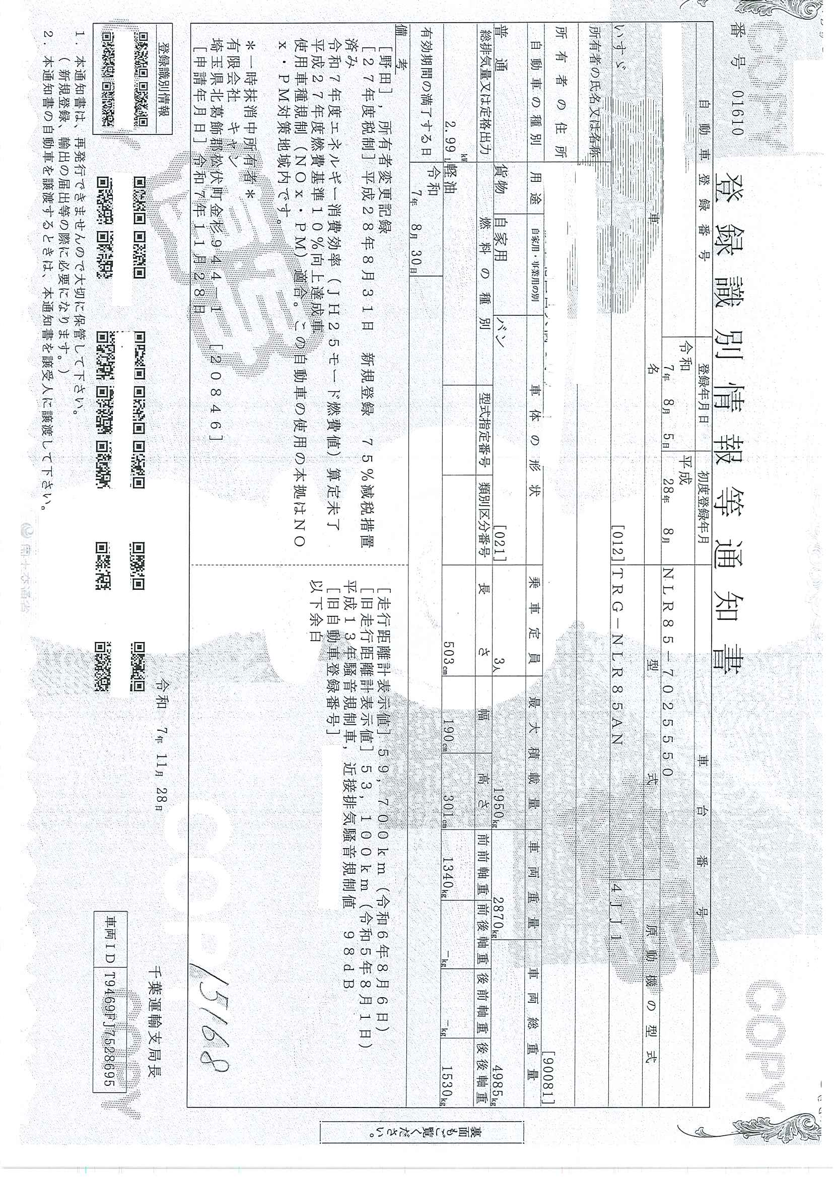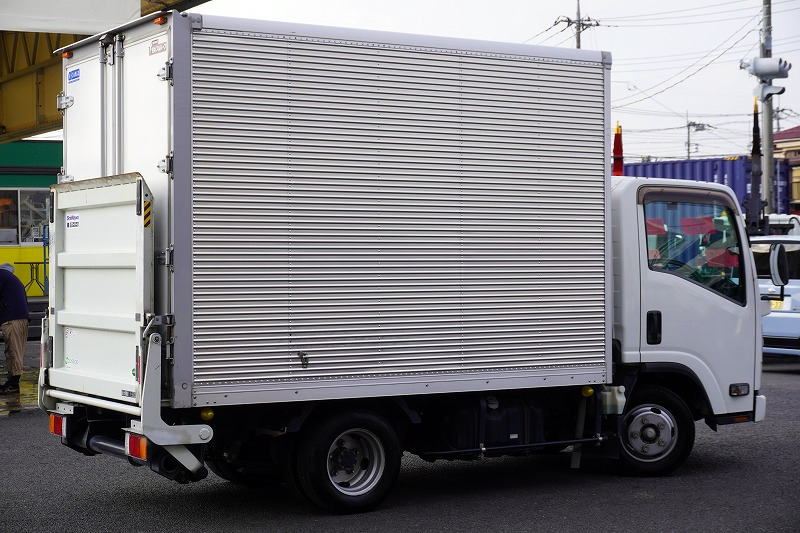| いすゞ | 標準幅 ショート ドライバン 2トン リア観音ドア 大型アームリフト ラッシングレール2段 床縞板張り 総重量5トン未満 | 28年8月 | TRG-NLR85AN |
