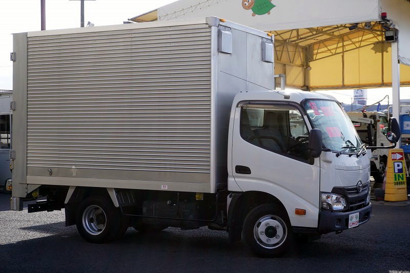 在庫No.K-0188 ダイナ 10尺 アルミバン 積載2000kg サイドドア リア観音扉 床下格納パワーゲート ラッシング1段 壁面フック2対 落とし込みフック4対 左電格ミラー バックカメラ ETC 社外ナビ ワンセグTV 衝突軽減ブレーキ 車線逸脱警報 トヨタ車体製 AT車! 車検「R8年4月まで!」