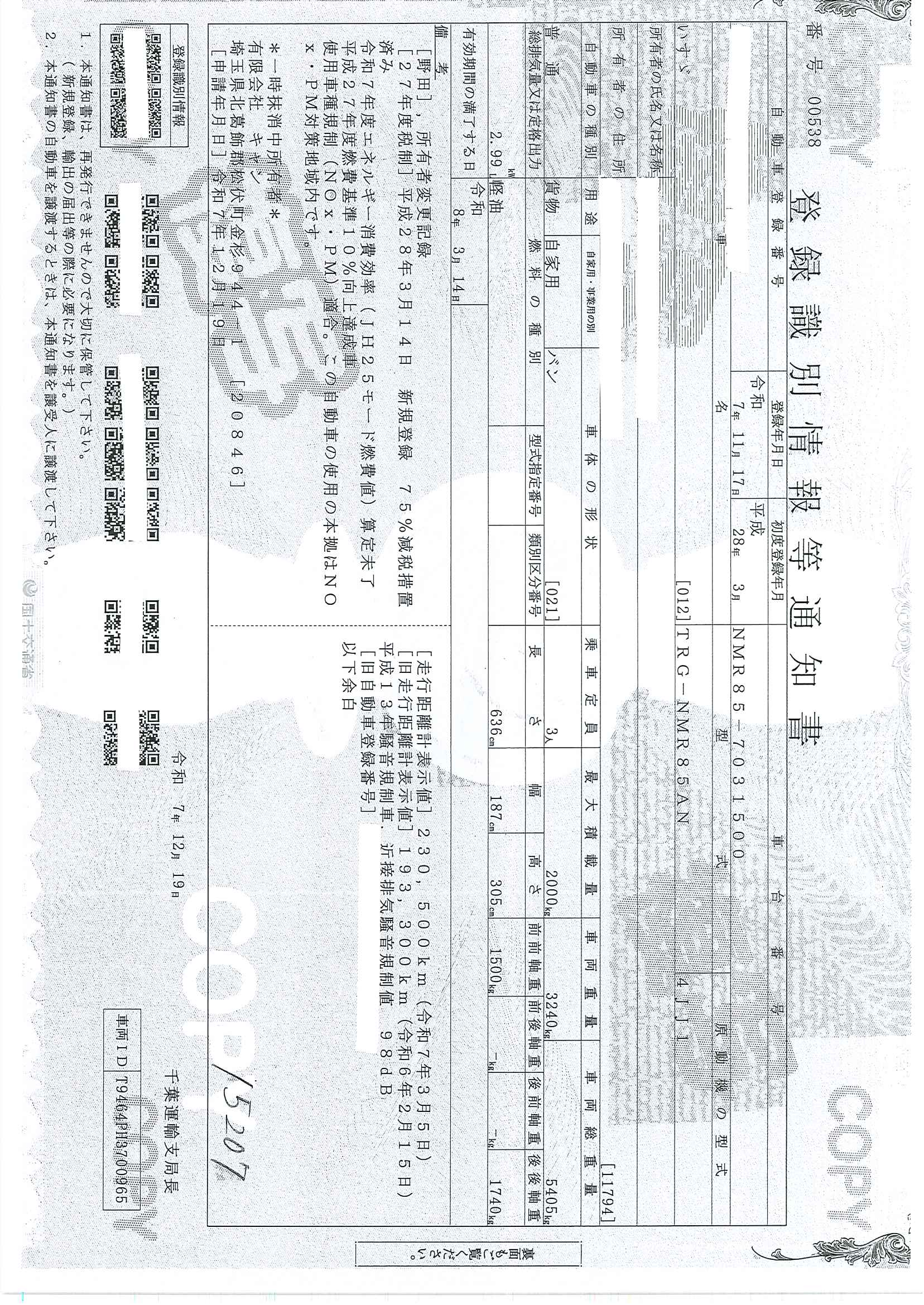| 251,200km | 抹消 | 2WD | MT | ディーゼル | 2 | 3人 |