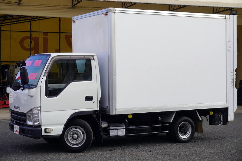 在庫No.K-0252 エルフ 10尺 パネルバン 積載1250kg 跳ね上げ式 垂直パワーゲート ラッシング2段 キーレス AT車!準中型(5トン限定)免許対応! 車検「R8年6月まで!」