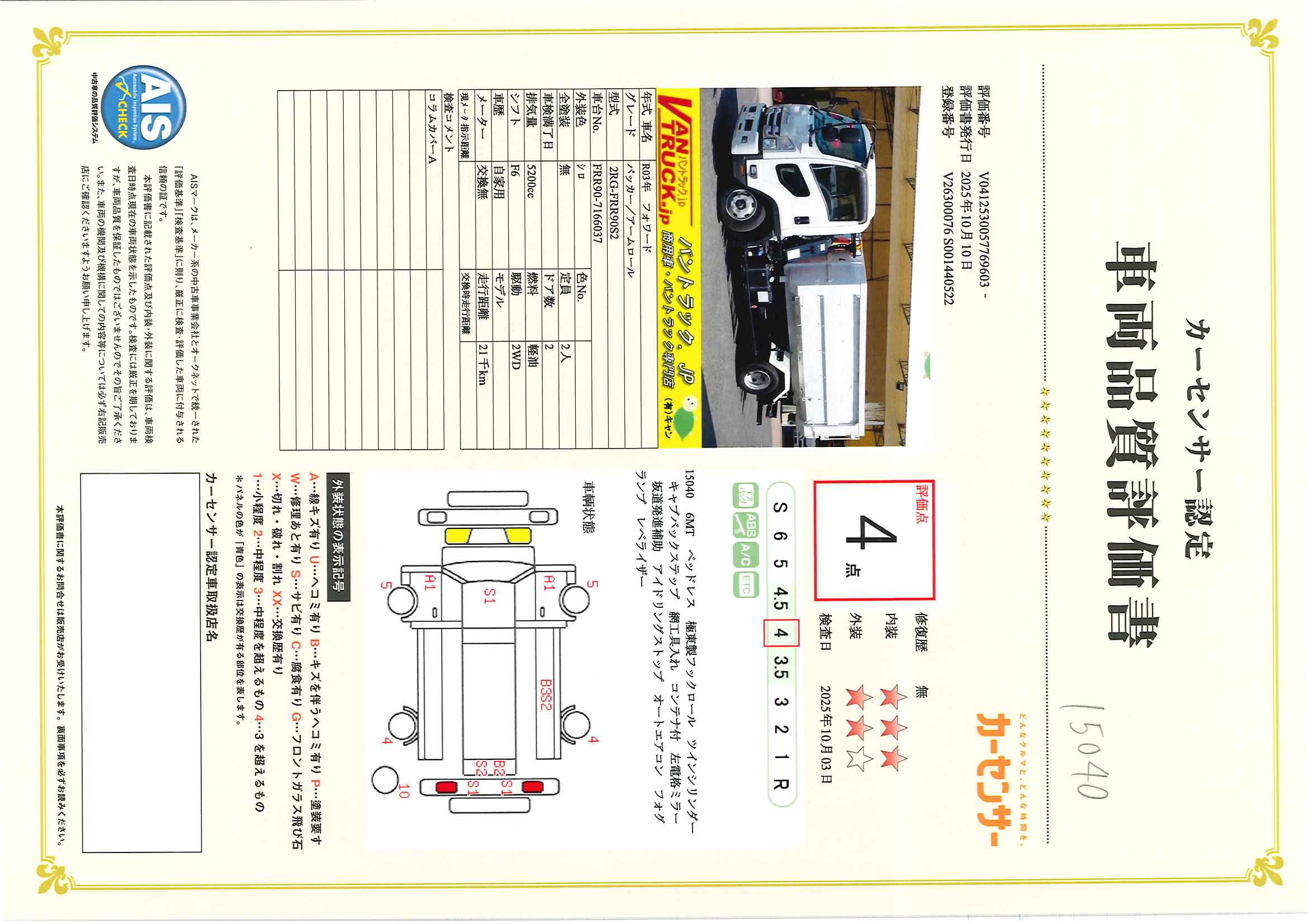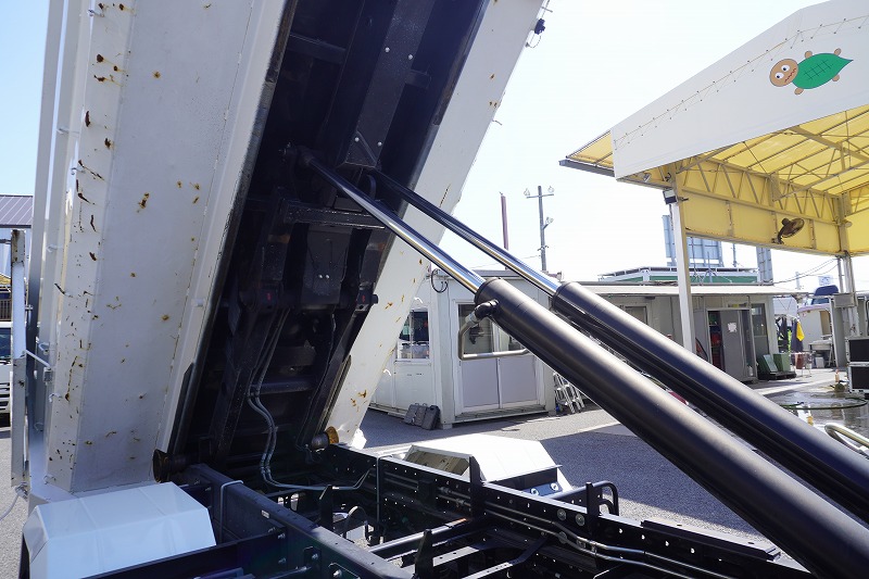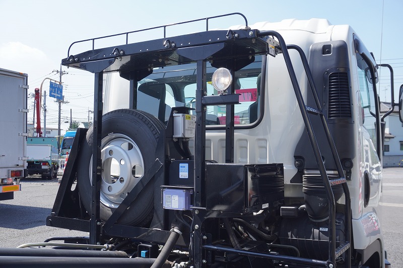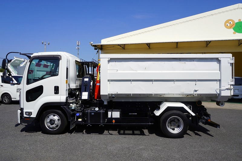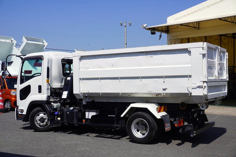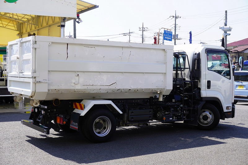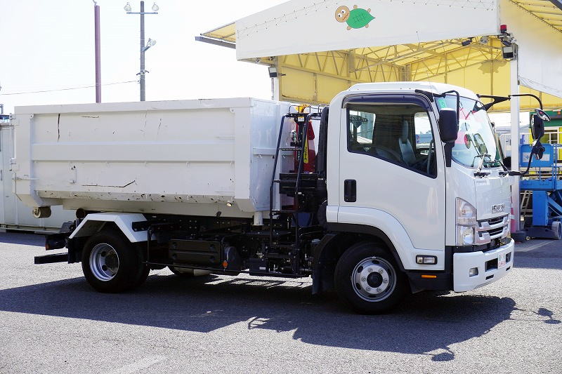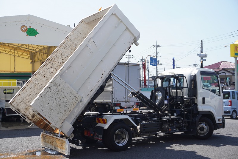 在庫No.K-0040 フォワード 4トン 「ベッドレス」 フックロール 極東製 積載3600kg ツインシリンダー キャブバックステップ コンテナ付き ETC 坂道発進補助 低走行!6速MT!