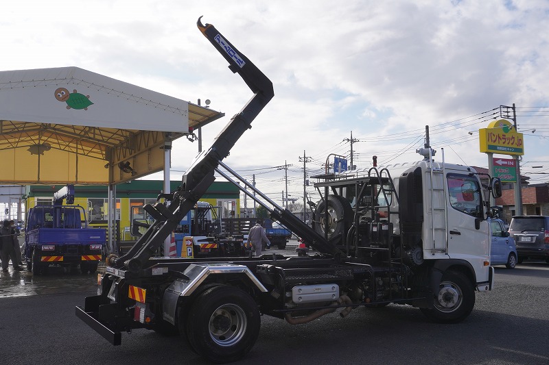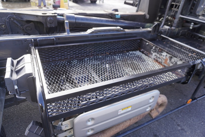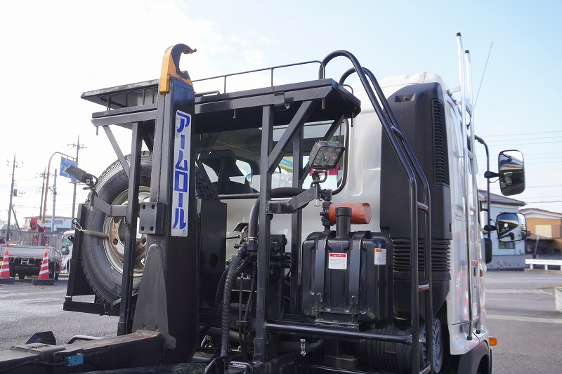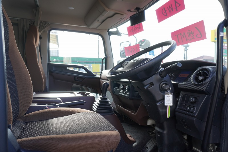 在庫No.K-0192 レンジャー 4トン 「4WD ベッド付き」 アームロール 新明和製 積載3050kg ツインシリンダー キャブバックステップ 網工具入れ 左右キャブラダー 坂道発進補助 オートエアコン LEDヘッドライト フォグランプ 衝突軽減ブレーキ 車線逸脱警報 6速MT!
