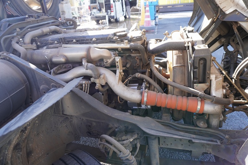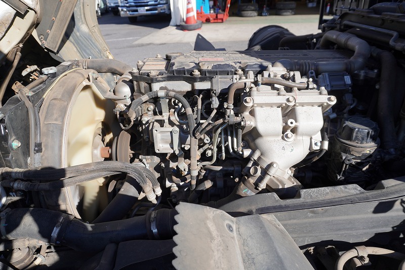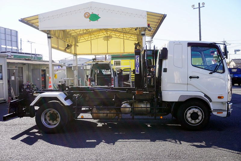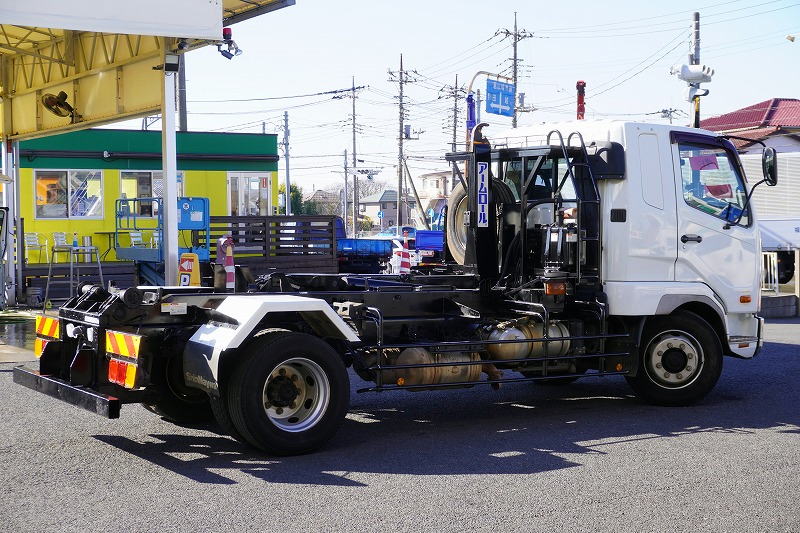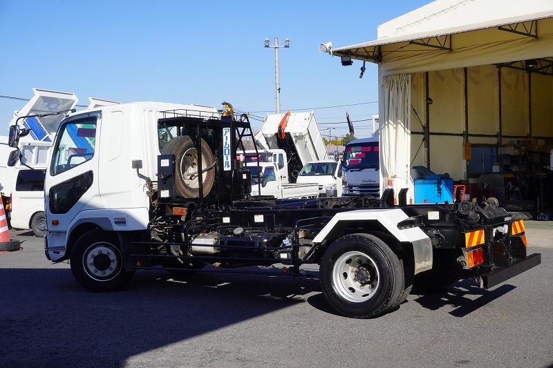 在庫No.K-0231 ファイター 増トン 「ベッド付き」 アームロール 新明和製 積載8000kg ツインシリンダー キャブバックステップ メッキパーツ 坂道発進補助 ETC 6速MT!