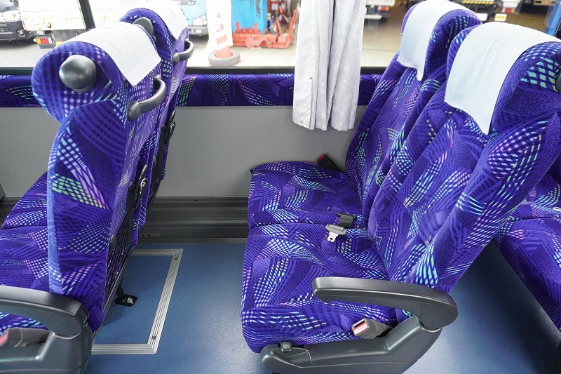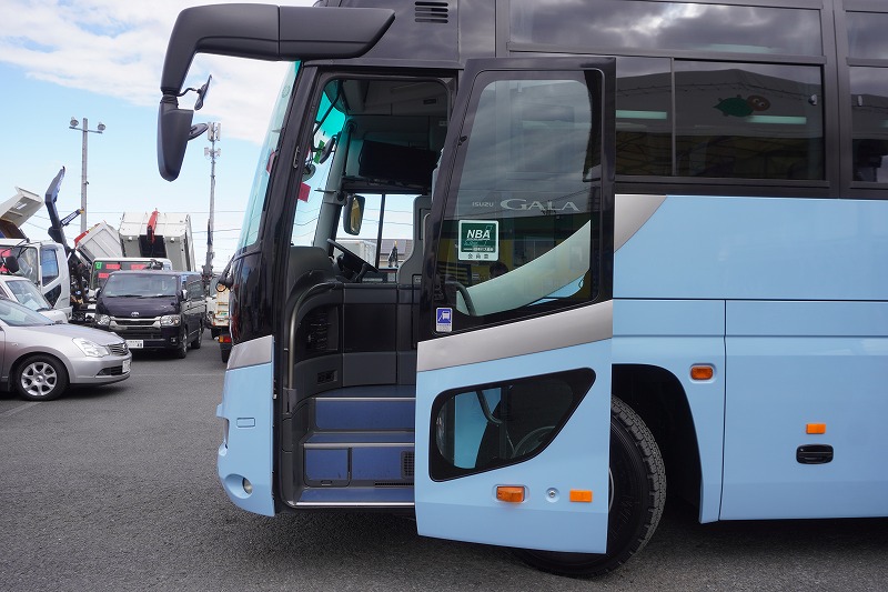 在庫No.K-0240 いすゞ ガーラ ハイデッカー9 「ショート」 観光バス 29人乗り 1ドア 自動ドア 総輪エアサス リターダー リア4脚サロンシート 貫通式トランク2列 格納式後席用モニター2箇所 冷蔵庫 湯沸器 ルームラック ガイド席 モケットシート バックカメラ ETC2.0 衝突軽減ブレーキ 車線逸脱警報 6速MT!