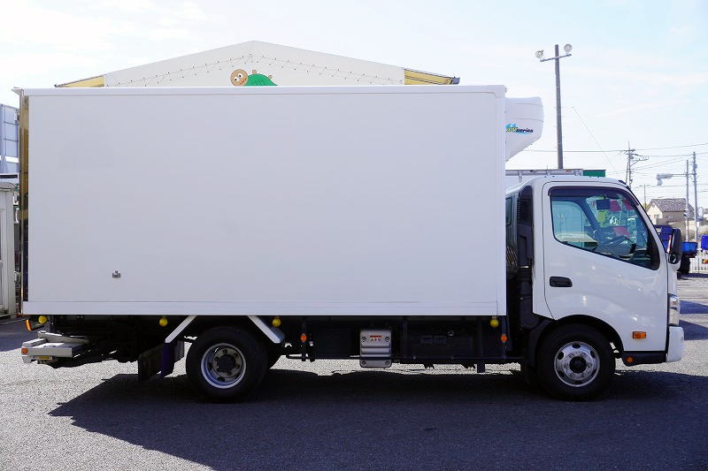 在庫No.K-0270 デュトロ 「ワイドロング」 冷蔵冷凍車 積載2950kg 格納パワーゲート サイドドア -30度設定 荷台シマ板張り ラッシング2段 左電格ミラー LEDヘッドライト フォグランプ バックカメラ ETC2.0 クリアランスソナー 衝突軽減ブレーキ 車線逸脱警報 東プレ製 AT車! 車検「R8年9月まで!」