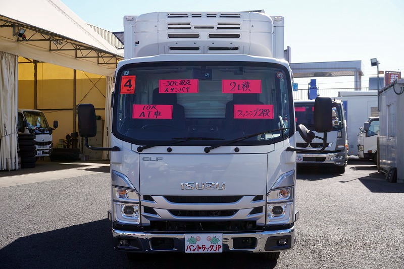 在庫No.K-0327 エルフ 10尺 冷蔵冷凍車 積載2000kg 東プレ製 サイドドア -30度設定 スタンバイ装置 ラッシング2段 荷台シマ板張り エアリブ 90度ストッパー 左電格ミラー バックカメラ ETC LEDヘッドライト&フォグランプ 衝突軽減ブレーキ 車線逸脱警報 AT車!