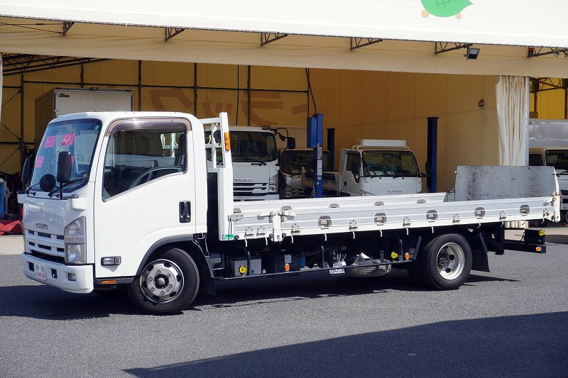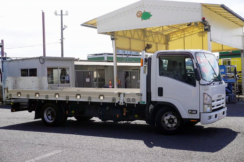 在庫No.K-0062 エルフ 「ワイド超ロング」 セーフティーローダー 一般用 花見台製 積載3350kg ウインチ ラジコン 五方開 アルミブロック 荷台板張り 床フック ロープ穴 左電格ミラー フォグランプ AT車!