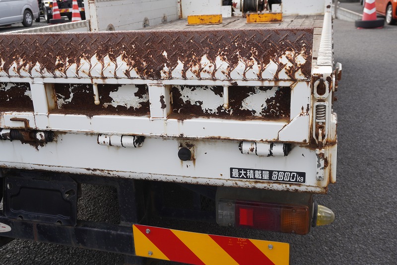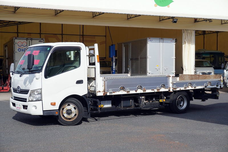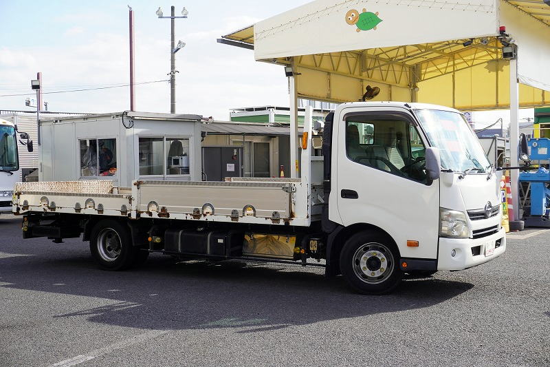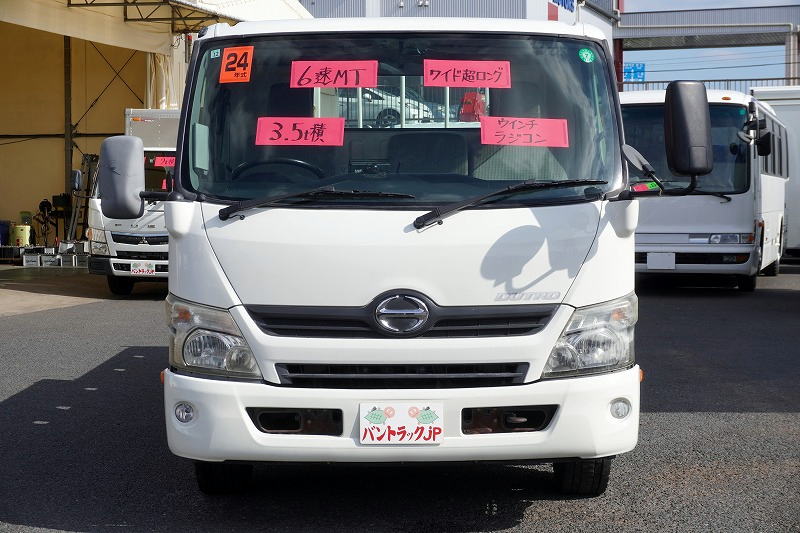 在庫No.K-0100 デュトロ 「ワイド超ロング」 セーフティーローダー 一般用 フジタ製 積載3500kg 造りボディー ウインチ ラジコン 五方開 アルミブロック アオリ上部プロテクター付き 荷台板張り 床フック ロープ穴 鳥居Jフック 左電格ミラー 坂道発進補助 ETC フォグランプ 6速MT!