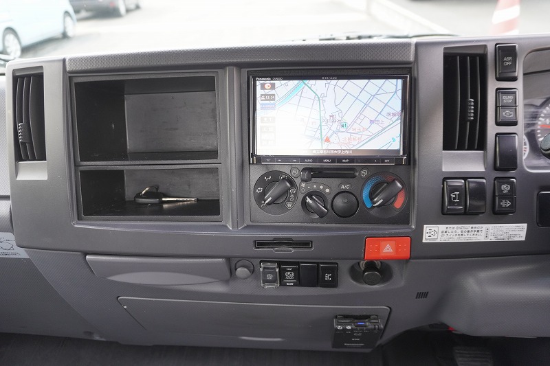 在庫No.K-0177 エルフ 「ワイド超ロング」 キャリアカー 2台積 花見台製 積載3650kg ウインチ 油圧リアゲート ラジコン 社外ナビ ETC 左電格ミラー 坂道発進補助 LEDヘッドライト フォグランプ メッキパーツ ワンオーナー!6速MT!