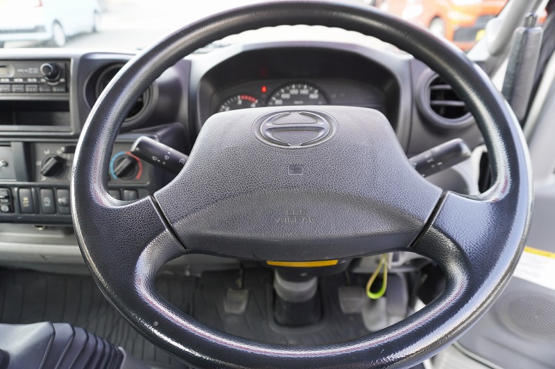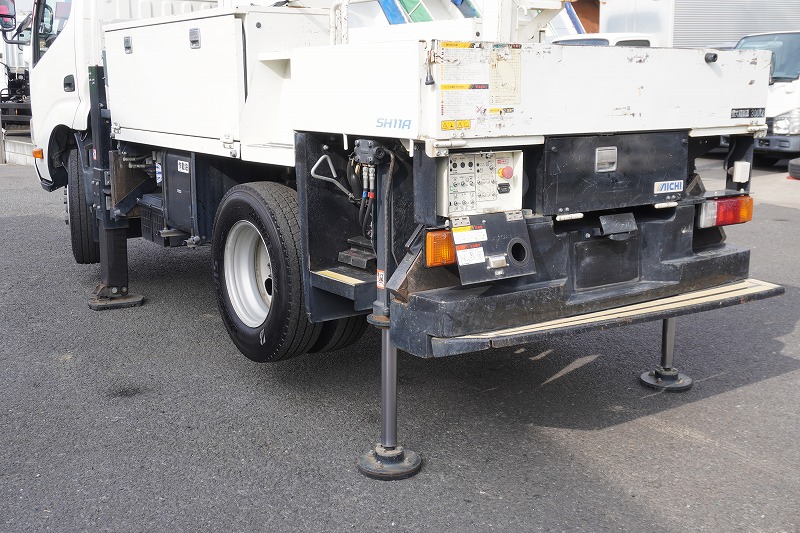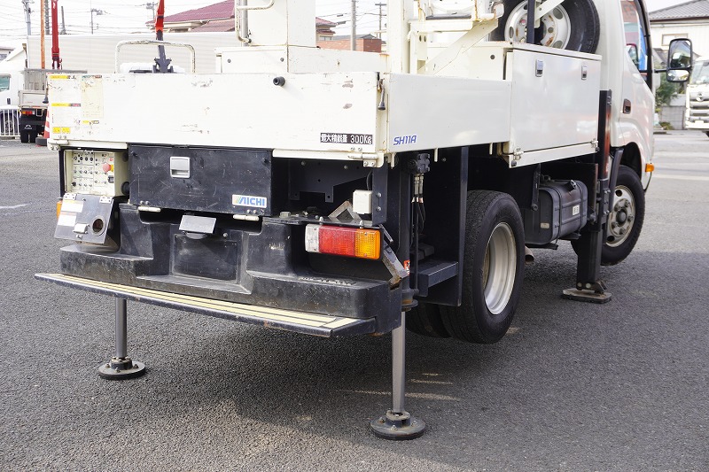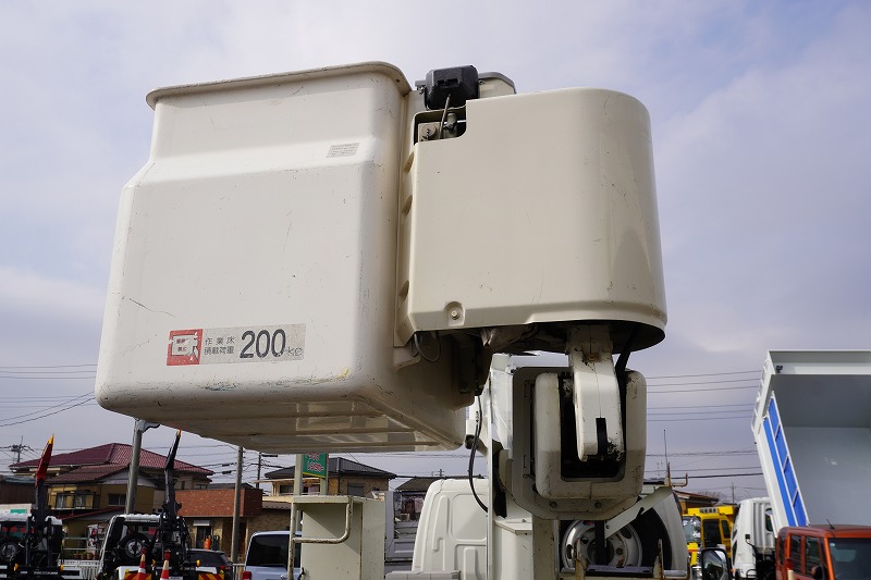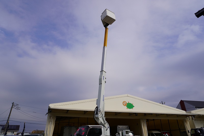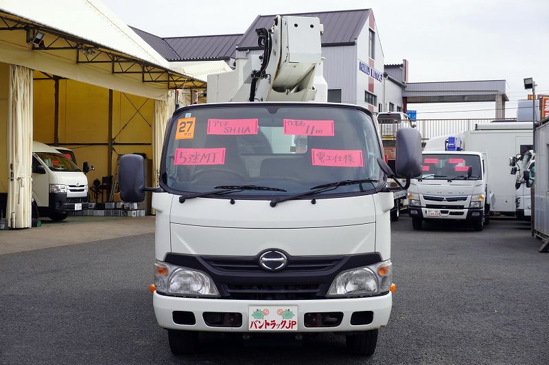 在庫No.K-0173 デュトロ 高所作業車 アイチ製(SH11A) 最大地上高11m FRPバケット バケット積載荷重200kg 積載300kg 工具入れ ジョイスティックタイプ アワーメーター:4590h ブーム自動格納 ジャッキ自動張出 左電格ミラー 坂道発進補助 電動パーキングブレーキ 電気工事仕様!5速MT!