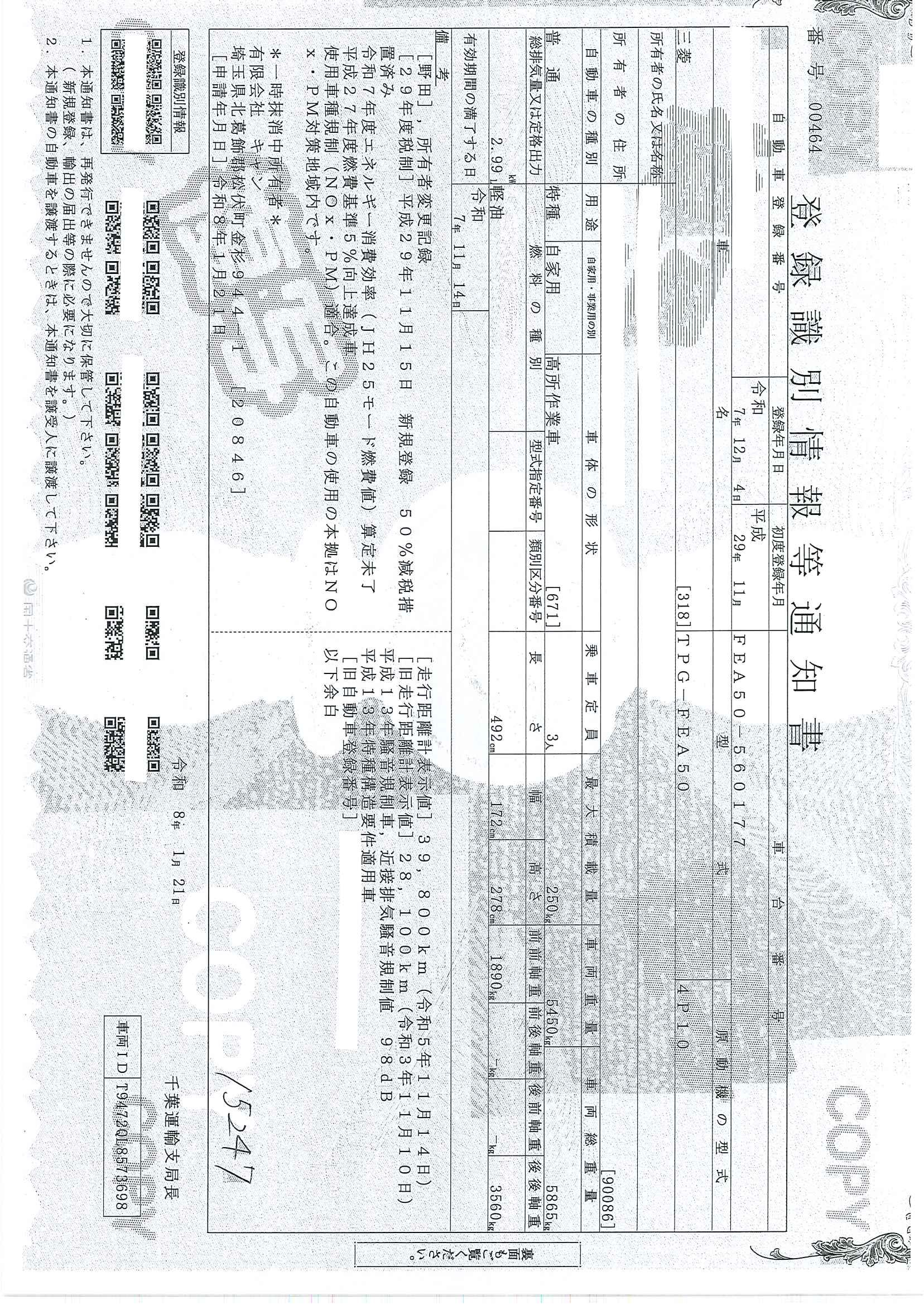 当店が把握できる車検証の表記より