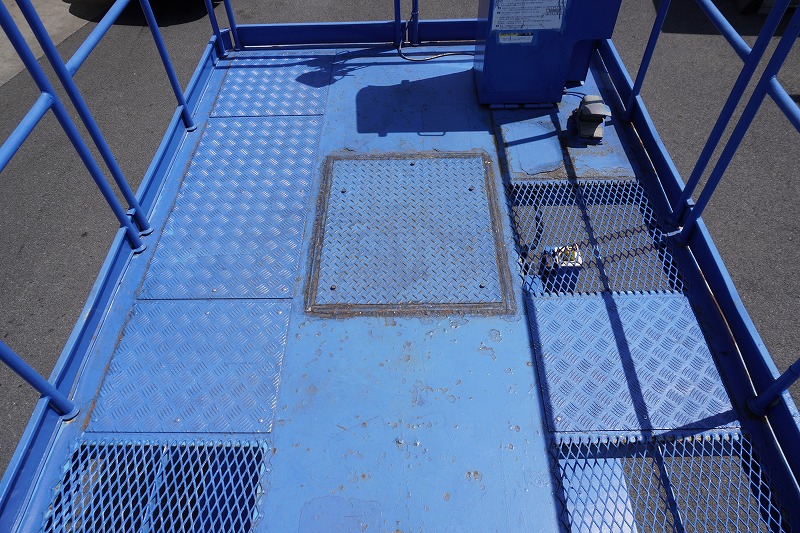 高所作業車 作業高9.9m 鉄製バケット アワーメーターh テーブルデッキ ブーム自動格納 ローラーアウトリガー |